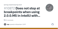 Does not stop at breakpoints when using 2.0.0.M5 in IntelliJ with gradle bootRun · Issue #10872 · spring-projects/spring-boot