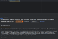 November 22, 2024 - Please provide Operating system: Ubuntu 22.04 SonarLint plugin version: - Vs code: v4.12.0 - Intellij: 10.12.0.79769 Programming language you’re coding in: Java Is connected mode used: Connected to SonarQube (and which version): SonarQube Developer Edition v10.7 And a thorough description of the problem / question: I use both IDEs, Intellij and VS Code, I connect them to the same project in the same SonarQube, however in Intellij I noticed that it gives me a problem that does not appear...