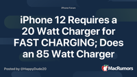 iPhone 12 Requires a 20 Watt Charger for FAST CHARGING; Does an 85 Watt Charger Charge Faster? | MacRumors Forums