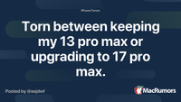 Torn between keeping my 13 pro max or upgrading to 17 pro max. | MacRumors Forums