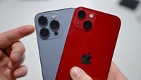 September 24, 2021 - You can see a major difference between the phones on their backs: the Pro models have three cameras, while the 13 and mini only have two. (Molly Flores/PCMag) Looking more closely at the best-selling, standard-sized models, Apple said that this year's versions have brighter screens than last year's models, but I couldn't see that initially. Which is which? iPhone 12, with the larger notch, is on the left.