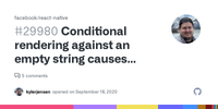 This trick only works with booleans, null, undefined and 0. React tries to render the string even if it is empty.