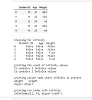 >>> df = pd.DataFrame({"col1": [1, np.inf, -np.inf], "col2": [2, 3, np.nan]})
