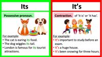 June 10, 2025 - Keep in mind that using contractions, such as it’s, is discouraged in formal writing contexts. Its is the possessive form of it, used to indicate possession, ownership, belonging, etc. English generally uses apostrophes to indicate possession, for example, Mary’s bike (the bike belonging to Mary) and the lions’ roars (the roars of the lions).