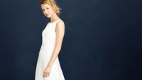 J.Crew Camille Wedding Gown in Ivory: flowy cotton-silk fabric that is subtly pleated, delicate straps, beautiful covered buttons, and long ties in back that can be worn in a bow or in a simple knot. $300.
