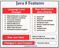 April 15, 2018 - Subscribe Youtube For Video Tutorials ยท by ยท Java Platform, Standard Edition 8 is a major feature release of Java programming language development. Its initial version was released on 18 March 2014. Here is the list of Java 8 features with examples. Java 8 functional interface.