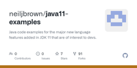 GitHub - neiljbrown/java11-examples: Java code examples for the major new language features added in JDK 11 that are of interest to devs.
