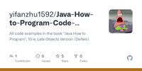 GitHub - yifanzhu1592/Java-How-to-Program-Code-Examples: All code examples in the book "Java How to Program", 10/e, Late Objects Version (Deitels)