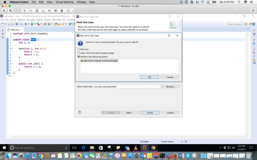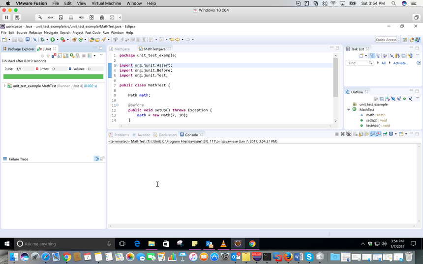8- Here, I simply add 7 and 10. So, I expect the answer to be 17. Complete your test class like this: