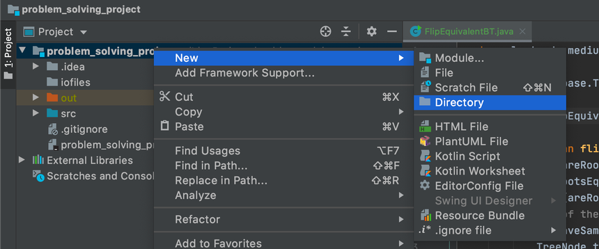 1- Right-click on the main folder of your project: -> New -> Directory. You should call this 'test'.