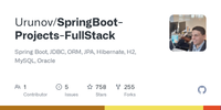 GitHub - Urunov/SpringBoot-Projects-FullStack: Spring Boot, JDBC, ORM, JPA, Hibernate, H2, MySQL, Oracle · GitHub