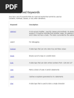 Java KeyWord - Free download as Word Doc (.doc / .docx), PDF File (.pdf), Text File (.txt) or read online for free. The document defines keywords in the Java programming language and provides a brief description of each keyword. Some keywords like abstract, final, and public are access modifiers used to control accessibility.