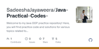 GitHub - SadeeshaJayaweera/Java-Practical-Codes-: Welcome to my Java OOP practice repository! Here, you will find practice code and solutions for various topics related to Object-Oriented Programming (OOP) in Java.