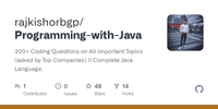 GitHub - rajkishorbgp/Programming-with-Java: 300+ Coding Questions on All Important Topics (asked by Top Companies) || Complete Java Language.