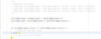 which lacks a test for the size of people, in other words allows duplicates. Further, using containsAll combining two Lists in very inefficient. It’s much better if you use a collection type which reflects you intention, i.e. has no duplicates, does not care about an order and has an efficient lookup: