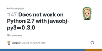 July 16, 2019 - name="javaobj-py3", ... url="https://github.com/tcalmant/python-javaobj", description="Module for serializing and de-serializing Java objects.", license="Apache License 2.0", license_file="LICENSE", ...