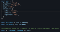 Note : In const { age } = person;, the brackets after const keyword are not used to declare an object nor a block but is the destructuring syntax.