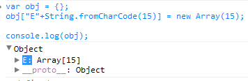 obj["E"+String.fromCharCode(15)] = new Array(15);