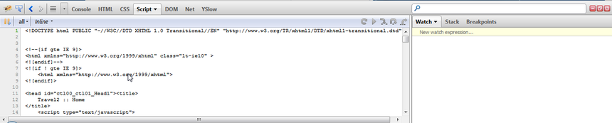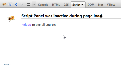 Firebug provides several features but the one we're interested in is the script tab. Clicking the script tab opens this window: