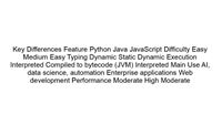 September 15, 2025 - Java is a secure, multithreaded programming language known for its fast speed, making it a good fit for enterprise-level applications, big data, and cloud development. JavaScript is an interpreted programming language that runs live in a browser, and every major web browser uses it to fetch new data, check forms for errors, and enable animations, comments, and chatting. Python is both a compiled and interpreted and general-purpose programming language used for a variety of purposes, including backend web development, data science, and machine learning.
