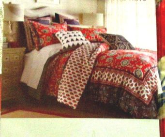 JC Penney Brand Queen Comforter set: jacquard diamond inset design… matching curtains and floor runner