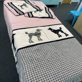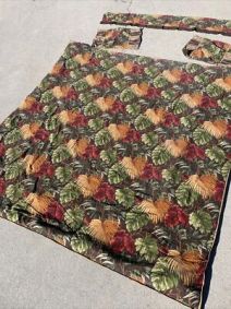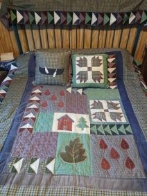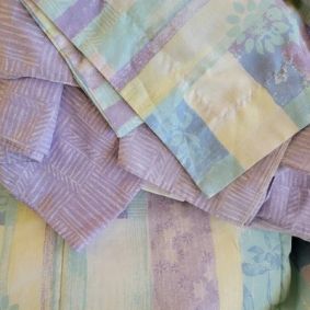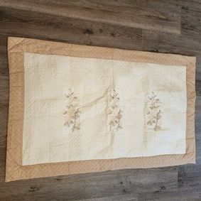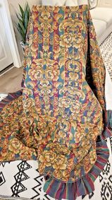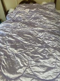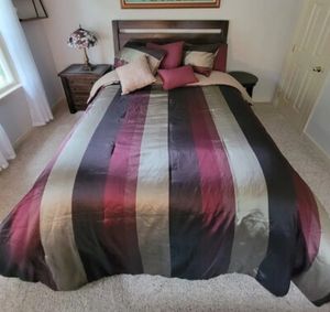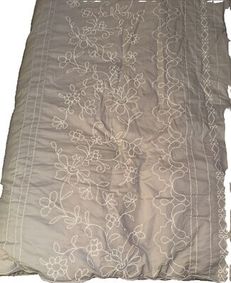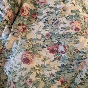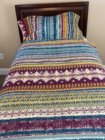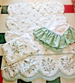 Excellent condition…. Color- sage and cream, 2 shams, matching curtains, 2 throw pillows,
