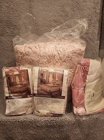 Go for a seven-piece king bedspread set and you'll usually find the comforter, two pillowcases, three decorative pillows, and a bed skirt. If you want a simple way to decorate an entire room, our 24-piece sets have everything you need. You can find sets that include sheets, pillows, and even king-size duvet covers. For a cohesive style in your room, don't forget to look for valances and curtains that go with your comforter set.