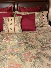 JC Penney Queen comforter set, matching curtains, floor runner, color-sage/cream