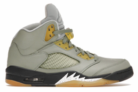 The Air Jordan 5 Jade Horizon features a Jade Horizon leather upper with seemingly oxidized TPU netted inserts, eyestays, and lace-locks for a broken-in look. A black midsole with Cement shark-teeth detailing pays homage to the original Air Jordan 5 Metallic. Although this Jordan 5 is brand new, it ditches the icy, semi-translucent outsole most new Jordan 5s come equipped with for a yellowed one, emphasizing the aged aesthetic.