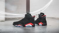 The Air Jordan 6 Black Infrared 2019 comes equipped with OG Nike Air branding on the heel. This is the first time that this colorway of the model comes with Nike Air branding, since the 2000 release...The rest of the shoe consists of a Black nubuck upper with Infrared detailing on the midsole, h