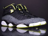 January 17, 2014 - Stay with us after the break for a better look at this upcoming Jordan 6 Rings release and then tell us in the comments if you’ll be adding them to your Venom Green rotation when the time is right. Jordan 6 Rings Color: Black/Venom Green-White-Cement Grey Style Code: 322992-033 Release Date: 03/22/14