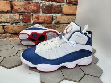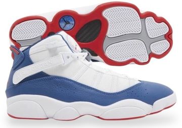 Style No. 322992-140 Color: White/True Blue/University Red Celebrate the legendary career of "His Airness" with the Jordan 6 Rings. Incorporating key features of each shoe worn during the championship series, it has premium details and lightweight, low-profile Zoom Air cushioning that delivers a responsive feel underfo