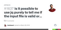 In fact, if you don't care about distinguishing between the different types of error, then you can just lose the -e switch. In this case, anything considered to be valid JSON (including false/null) will be parsed successfully by the filter . and the program will terminate successfully, so the if branch will be followed.