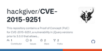 GitHub - hackgiver/CVE-2015-9251: This repository contains a Proof of Concept (PoC) for CVE-2015-9251, a vulnerability in jQuery versions prior to 3.0.0 that allows attackers to perform Cross-Site Scripting (XSS) attacks under certain conditions. · GitHub