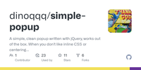 GitHub - dinoqqq/simple-popup: A simple, clean popup written with jQuery, works out of the box. When you don't like inline CSS or centering a popup with JS, like me, try it out.