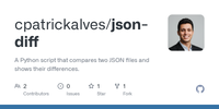 GitHub - cpatrickalves/json-diff: A Python script that compares two JSON files and shows their differences.