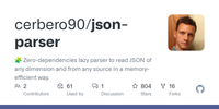 GitHub - cerbero90/json-parser: 🧩 Zero-dependencies lazy parser to read JSON of any dimension and from any source in a memory-efficient way.
