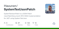 GitHub - Havunen/SystemTextJsonPatch: SystemTextJsonPatch is a JSON Patch (JsonPatchDocument) RFC 6902 implementation for .NET using System.Text.Json · GitHub