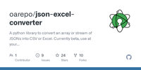 GitHub - oarepo/json-excel-converter: A python library to convert an array or stream of JSONs into CSV or Excel. Currently beta, use at your own risk