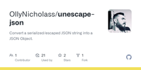 GitHub - OllyNicholass/unescape-json: Convert a serialized/escaped JSON string into a JSON Object.