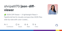 GitHub - shripatil70/json-diff-viewer: 🧩 JSON Diff Viewer — A lightweight React + TypeScript tool to visually compare two JSON files side-by-side with color-coded differences, live updates, dark/light mode, and zero UI libraries.