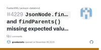 November 28, 2023 - Search before asking I searched in the issues and found nothing similar. Describe the bug JsonNode.findValues and JsonNode.findParents no-longer behave as expected in 2.16.0. If I call findValues("target") for the following JSON: { "targ...