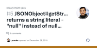 If this is causing you grief, I recommend you workaround by using a different mechanism to test for null, such as json.isNull().