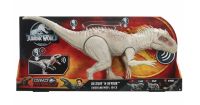 Be a part of the Jurassic World adventure with the ultimate in dinosaur battle action! A hybrid abomination of InGen labs, Destroy 'N Devour Indominus Rex is the most terrifying and deadliest dinosaur ever masterminded by science. Inspired by the film, this larger-size Indominus Rex dinosaur is approximately 8 inches high and 23-inches longand wreaks havoc and fear everywhere! Ominous features include ghostly white scales, vicious teeth, and long, dagger-like forearms. Indominus Rex features dual-button movement and sound activation: press the button in the middle of Indominus's back to activ