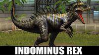 November 26, 2015 - Indominus Rex was served as the main antagonist of the film Jurassic World.[1] The Indominus Rex was one of the first hybrids to be added to the game along with Tropeogopterus, Carnoraptor, Stegoceratops, Koolasaurus, Spinoraptor and Ankylodocus. It is created by fusing a level 40 Velociraptor and level 40 Tyrannosaurus rex.
