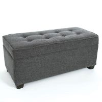Stylish storage ottoman with tufted seat in grey colour. Hinged top offers convenient storage within. Put your feet up and relax, while maintaining a clutter free living area with this handy storage bench.