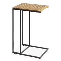 The BELDRINGE c-shaped side table brings stylish versatility to your outdoor or indoor spaces. Designed with a sleek black steel frame and a rich acacia wood top, this table blends modern minimalism with natural beauty. Its clever c-shaped form makes it easy to slide under chairs, sofas, or loungers, offering a convenient surface for drinks, snacks, or books.