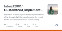 GitHub - fatmaT2001/CustomSVM_Implementation: Explore an in-depth, Python-based implementation of hard margin SVM from scratch using the cvxopt solver. This repository features custom coding of RBF, Linear, and Polynomial kernels, thoroughly exploring SVM concepts and their practical applications in the realms of machine learning and data science. · GitHub