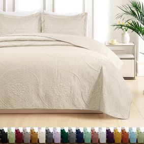 Go for a seven-piece king bedspread set and you'll usually find the comforter, two pillowcases, three decorative pillows, and a bed skirt. If you want a simple way to decorate an entire room, our 24-piece sets have everything you need.