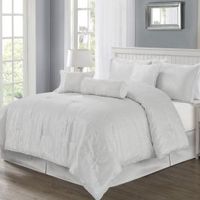 If you are looking to update your bedroom space, the place to start is with its primary asset, the bed! This 7 Piece Comforter Set is an elegant and romantic collection with just a whisper of lavishness. The comforter and shams are embellished with vine-like waves and Pamplonas, anchored by textured solids. The set is finished with a subtle shimmer, offering a celestial element. This collection's soft lines and Salernoing appeal can accent any room's unique style.